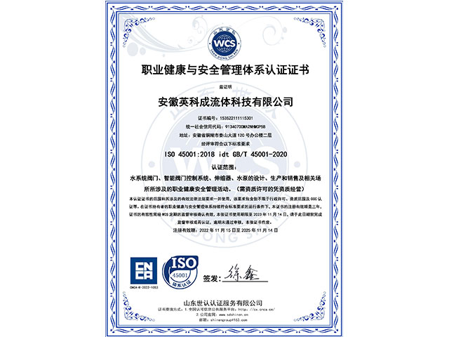 安徽英科成流體科技有限公司位于黃山腳下長江之濱的中國古銅都-安徽省銅陵市。公司注冊資金1.1億,是國內一家專業致力于給排水行業系統解決方案、閥門以及智能閥門技術研發與生產銷售服務為一體的企業。   我們擁有完善的質量控制體系和檢測設備,公司主要的產品有閘閥、蝶閥、偏心半球閥、液控蝶式止回閥、靜音止回閥、橡膠瓣止回閥、活塞式流量調節、錐型閥、節能型泵控閥、倒流防止器、減壓閥、排氣閥、排泥閥、伸縮器、閘門、啟閉機等二十多個系列,可以充分滿足客戶的一站式需求!